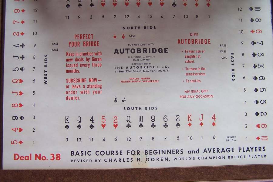 DescriptionThis listing is for Autobridge Game Board Advanced Course Group 3 Vintage Set 1949. |
