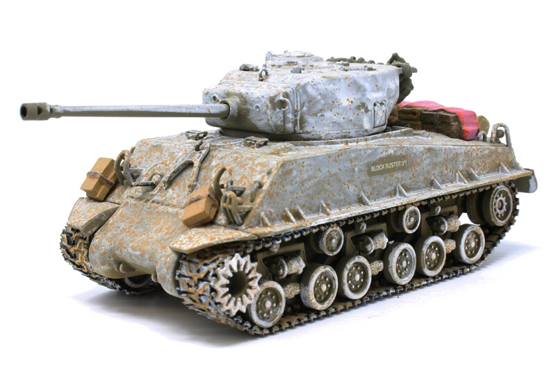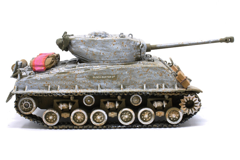 Please feel free to ask us a question in messages on your order, we answer all messages within 24 hours Monday – Friday 9am-6pm (excluding Bank Holidays and Weekends - these times few messages are answered). You will get a reply, but if it is over 24 hours Monday – Friday please feel free to try again as maybe your message never came through to us?The M4A3 "Easy Eight" with the HVSS suspension, which made for an easier ride, was first used during the Battle of the Bulge. This tank belongs to the Company B commander, Captain James Leach, and was named Blockbuster 3D. This was the third Sherman that Leach had operated since 1944. Many "Easy Eights" were supplied with side sand skirts that were quickly removed in the field because they interfered with suspension maintenance.