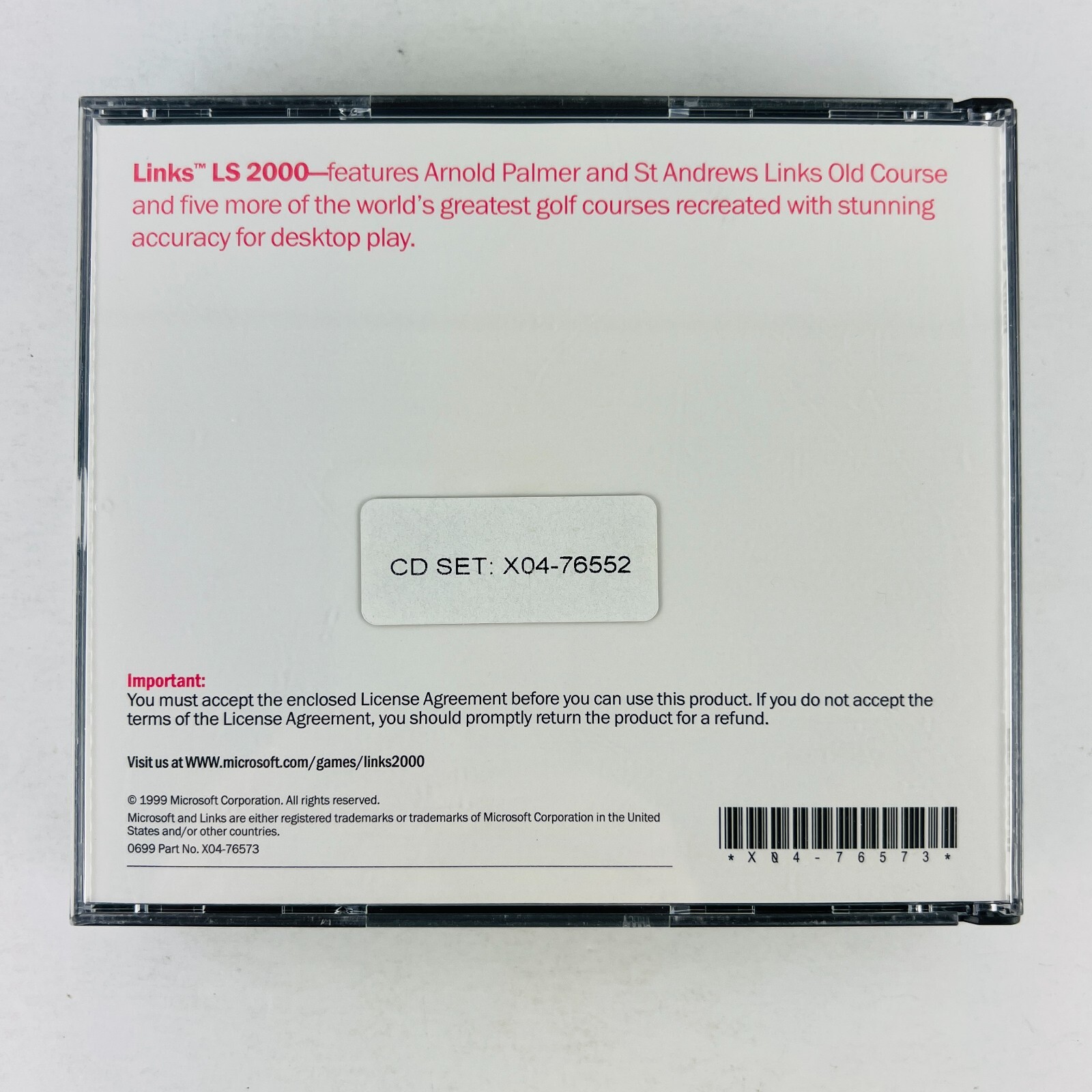 Microsoft Links LS 2000 is the newest edition of the all-time bestselling golf simulation. More than seventeen years of passion and precision have evolved into LS 2000--the most realistic golf experience possible on the PC. The ball physics of Links LS are so accurate, you can adjust your stance, club-face angle, and swing plane to set up a high-arching wedge shot that will actually back up on the green, just as it would on a real course! Links LS immerses you in a tournament environment with galleries of thousands to cheer your best shots. Links LS supports more than twenty-five of the world's greatest championship and resort courses (sold separately). New courses are re-created regularly to extend your desktop golf experience. Links LS includes multimedia tours of St Andrews, Covered Bridge, Hapuna, and Mauna Kea. In-depth multimedia interviews get you acquainted with the legend himself--Arnold Palmer.