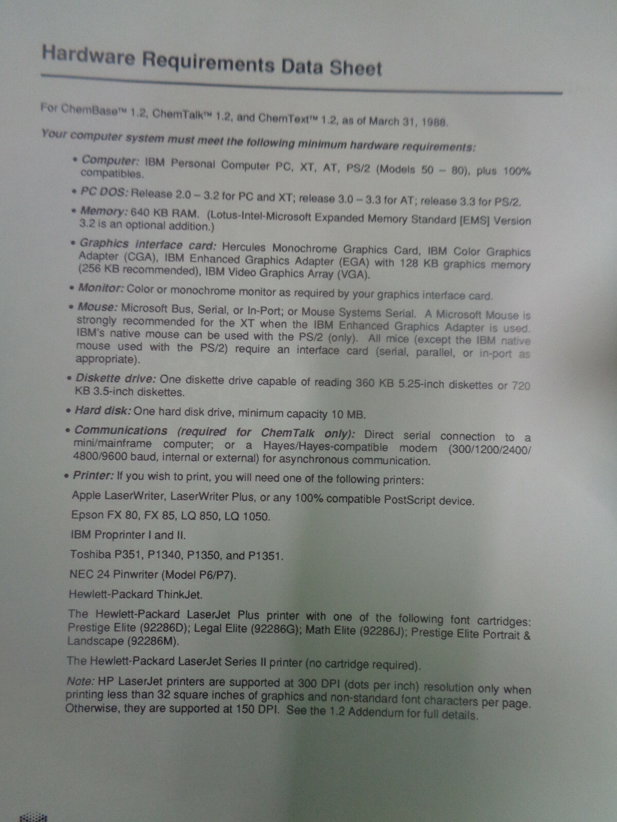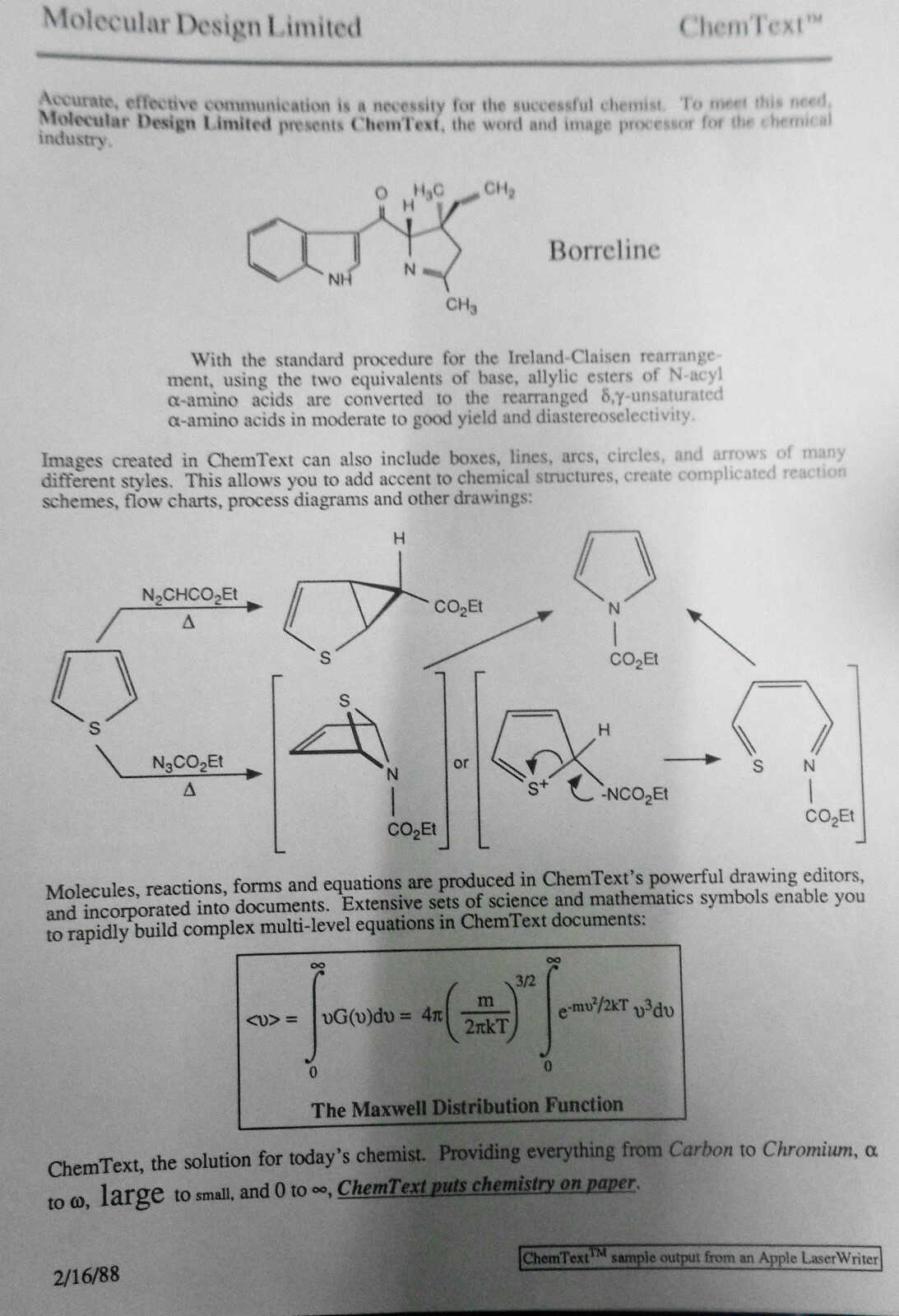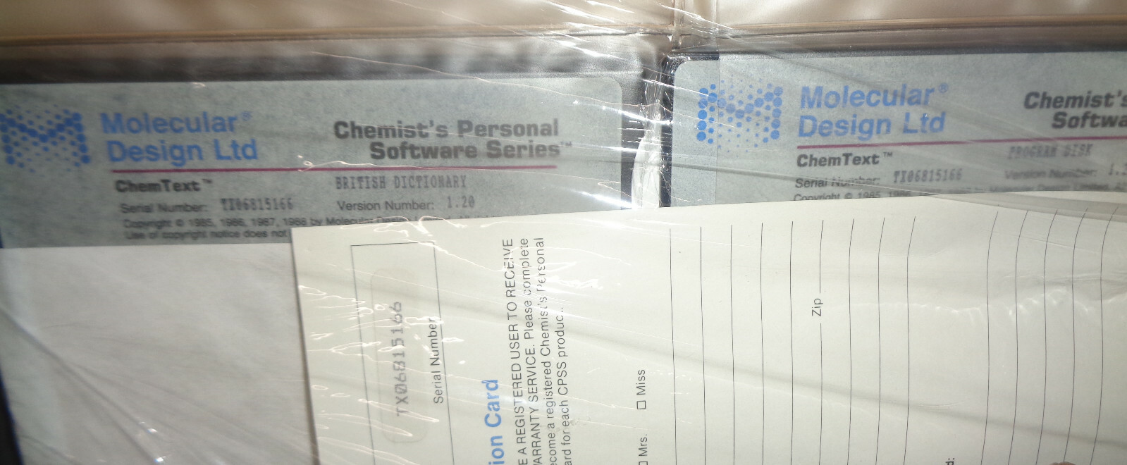 ChemText, by Molecular Design Ltd. - Version 1.2, 1988 Complete unused software package, with manuals and sealed 5.25 inch diskettes.