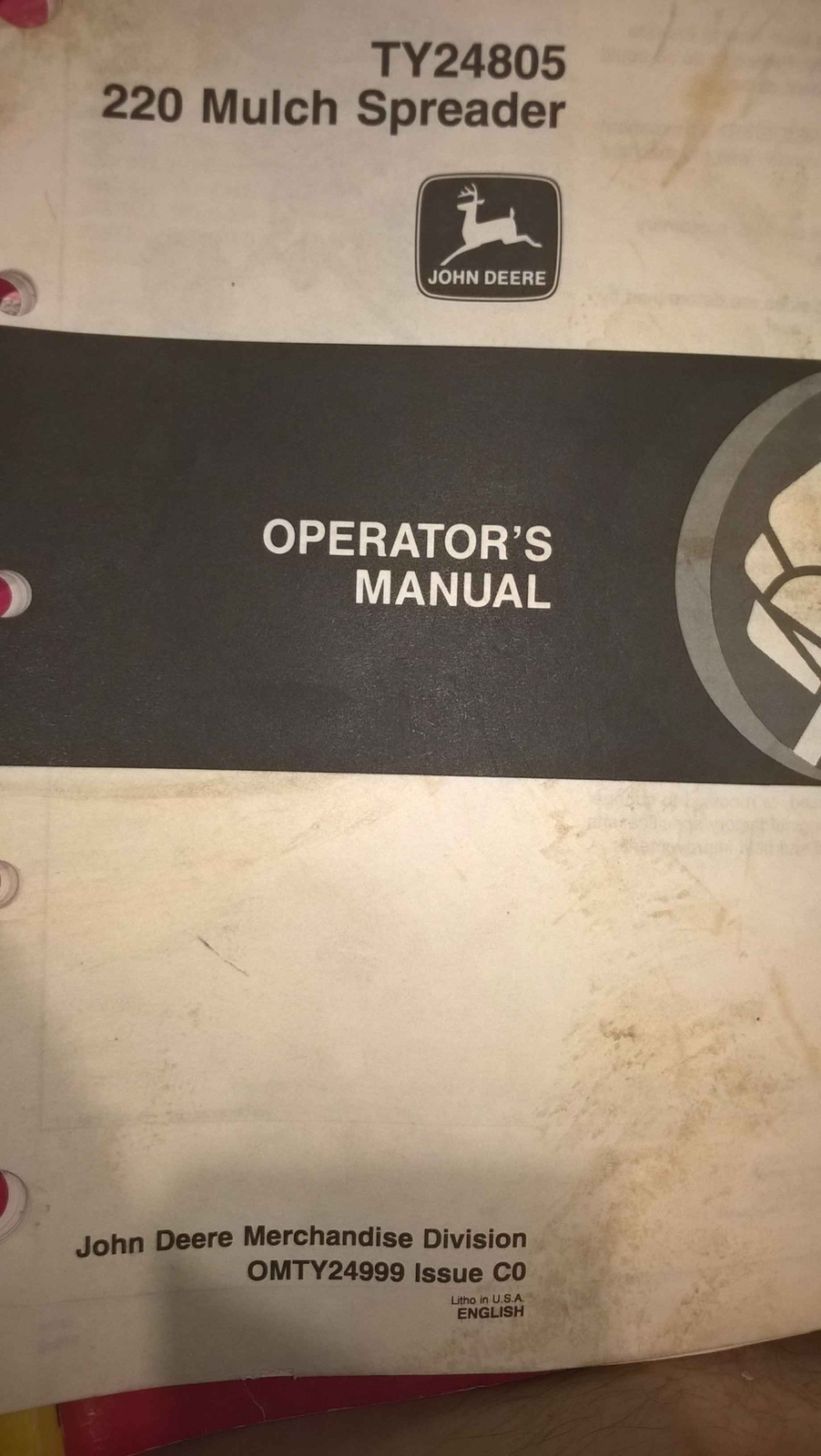 Original!! Operators Manual for the John Deere 220 Mulch Spreader.