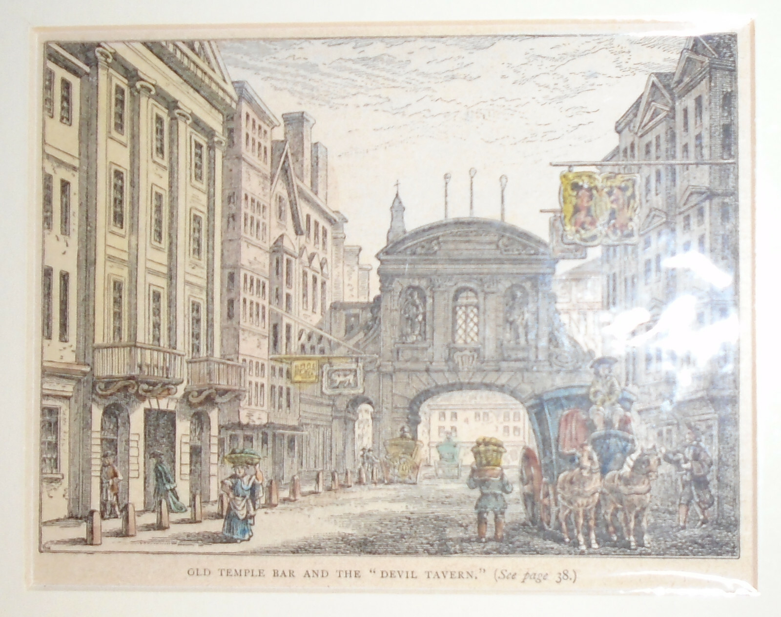 Old Temple Bar and the "Devil Tavern." 1897. Original hand-colored print