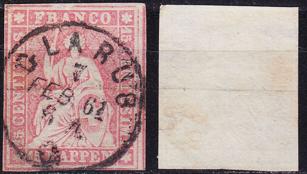 ohne Obligo: Stempel 1861, grüner Seidenfaden, MiNr 15 II ym a