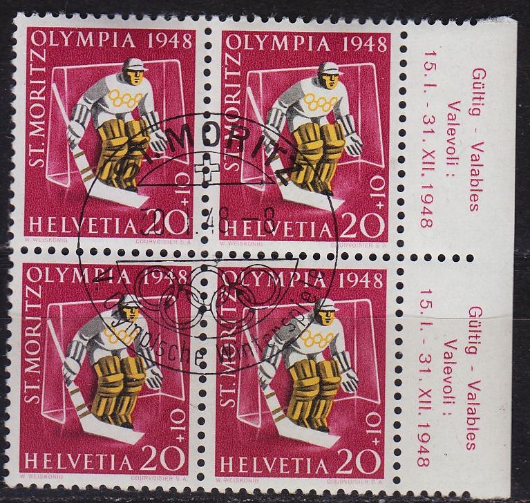 SCHWEIZ SWITZERLAND [1948] MiNr 0494 4er ( O/used ) [01] Tab Ersstag