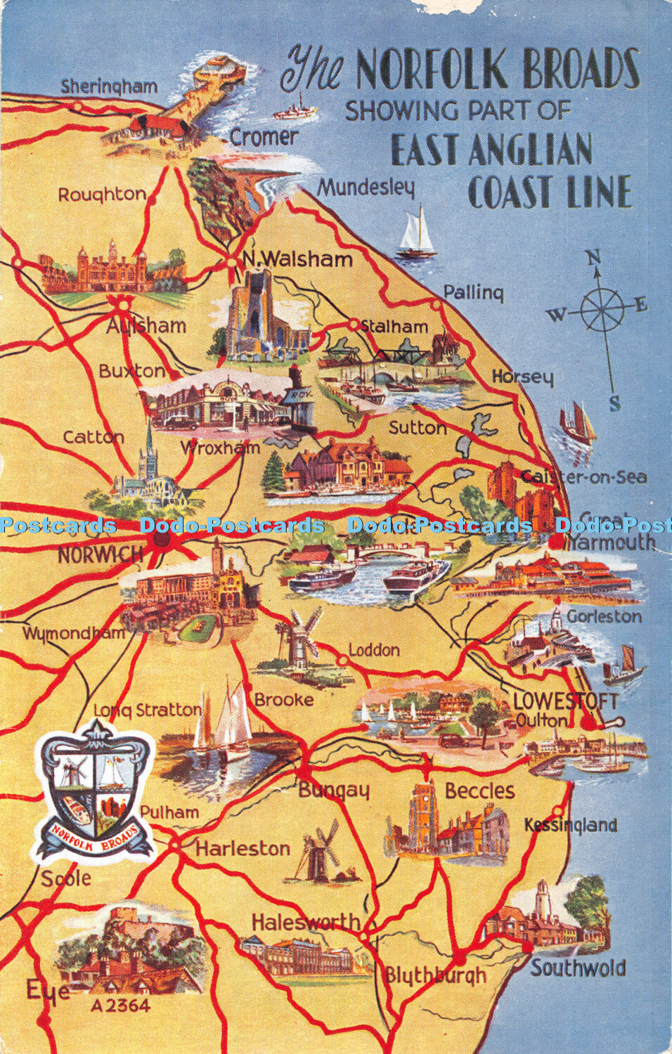R407713 The Norfolk Broads showing Part of East Anglian Coast Line Valentine Art